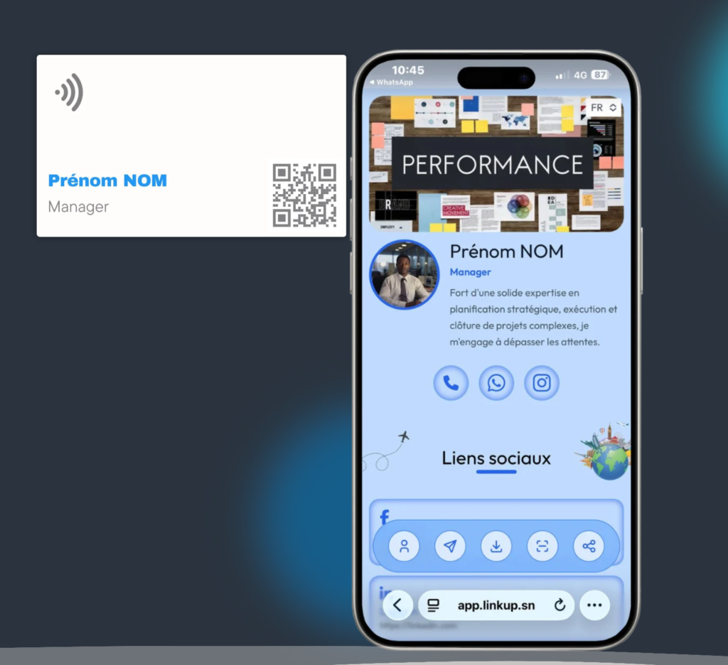 Un autocollant NFC ultra-fin qui se colle en 10 secondes sur votre téléphone, laptop ou vitrine. Vos clients vous scannent, votre profil s’ouvre. Aussi discret qu’efficace.